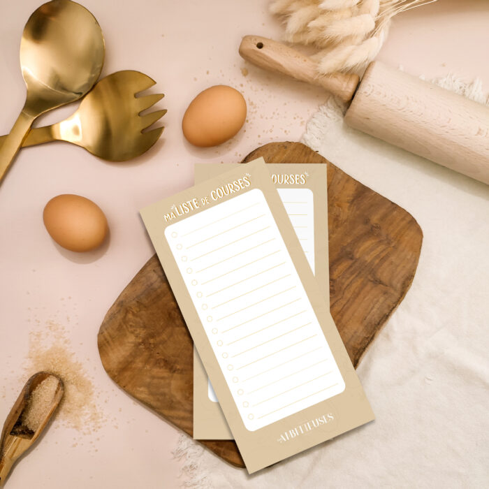 Laisse cette liste de courses à portée de main et complète-la au cours de la semaine en notant tous les produits dont tu as besoin. Il suffira de détacher le feuillet pour l’emporter avec toi lorsque tu iras faire tes emplettes.