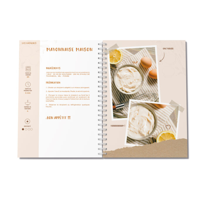Grâce à sa reliure spirale et son format compact, il ne prendra pas de place superflue dans la cuisine et te laissera tout l’espace nécessaire pour réaliser de bons petits plats.